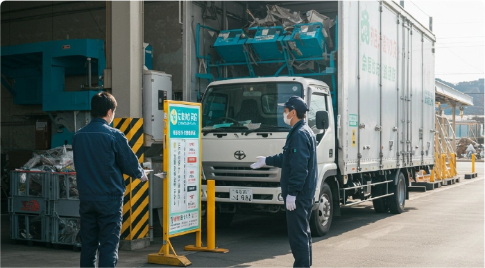 ※すべて台秤での計量の場合は、荷下ろし後そのまま外の駐車場に駐車していただけます。