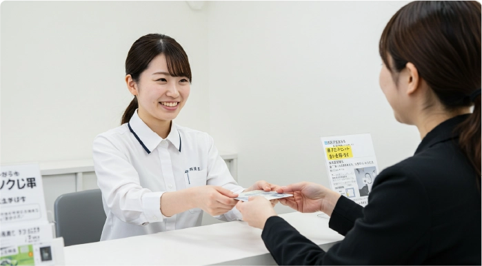 事務所にて簡単な書類をご記入いただき、その場で現金にてお支払いいたします。